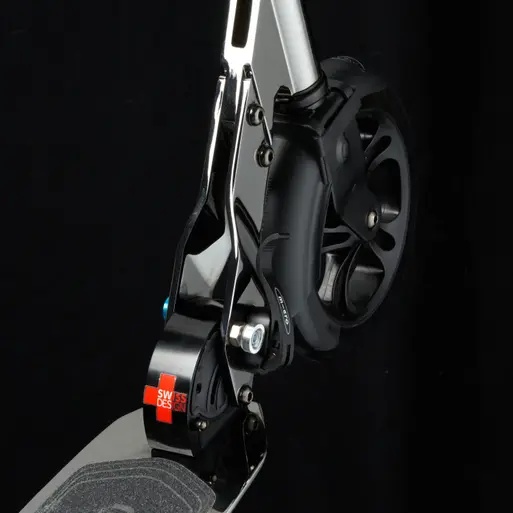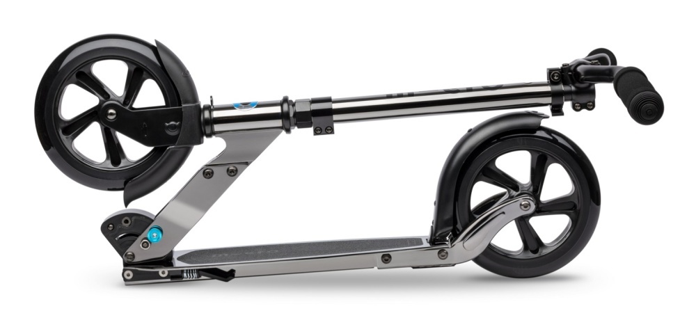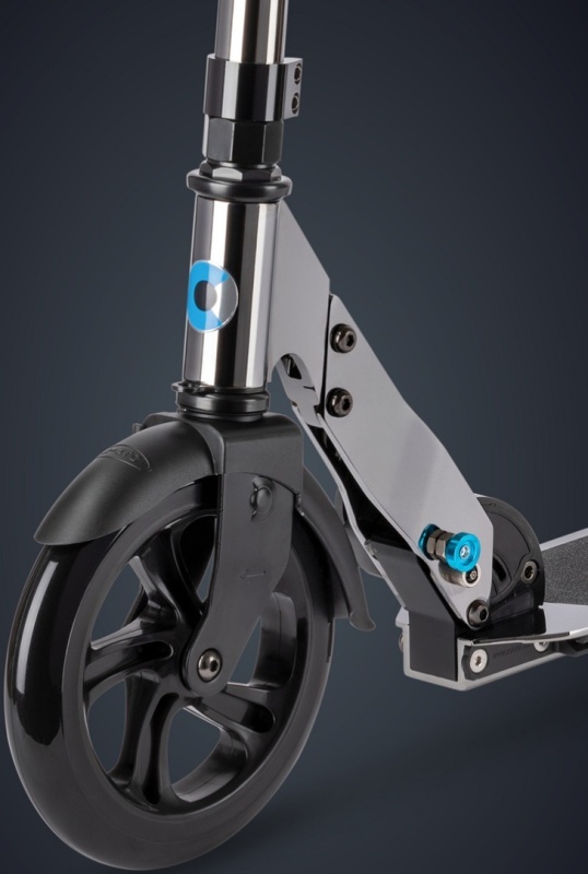 Trotineta neagră Micro Neochrome este proiectată pentru copii de la 8 ani, adolescenți și adulți. Trotineta este ideală pentru călătoriile prin oraș. Roțile mari cu un diametru de 200 mm oferă posibilitatea de a dezvolta rapid viteza, iar rulmenții din clasa AVES 7 contribuie la o rulare bună. Trotineta are o platformă joasă. Acest lucru minimizează oboseala atunci când călătoriți pe distanțe lungi și reduce încordarea spatelui.