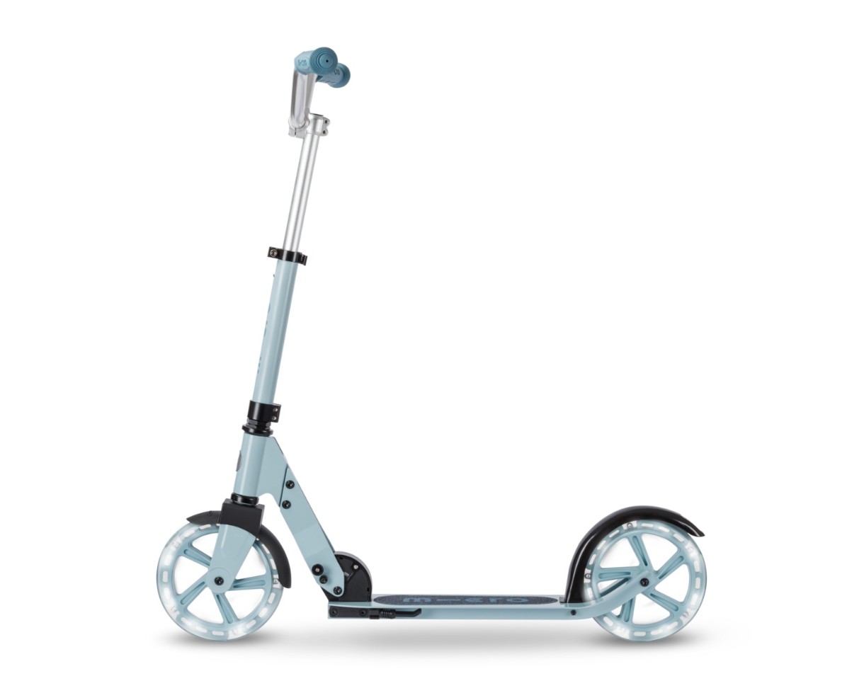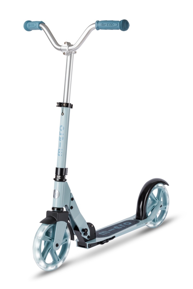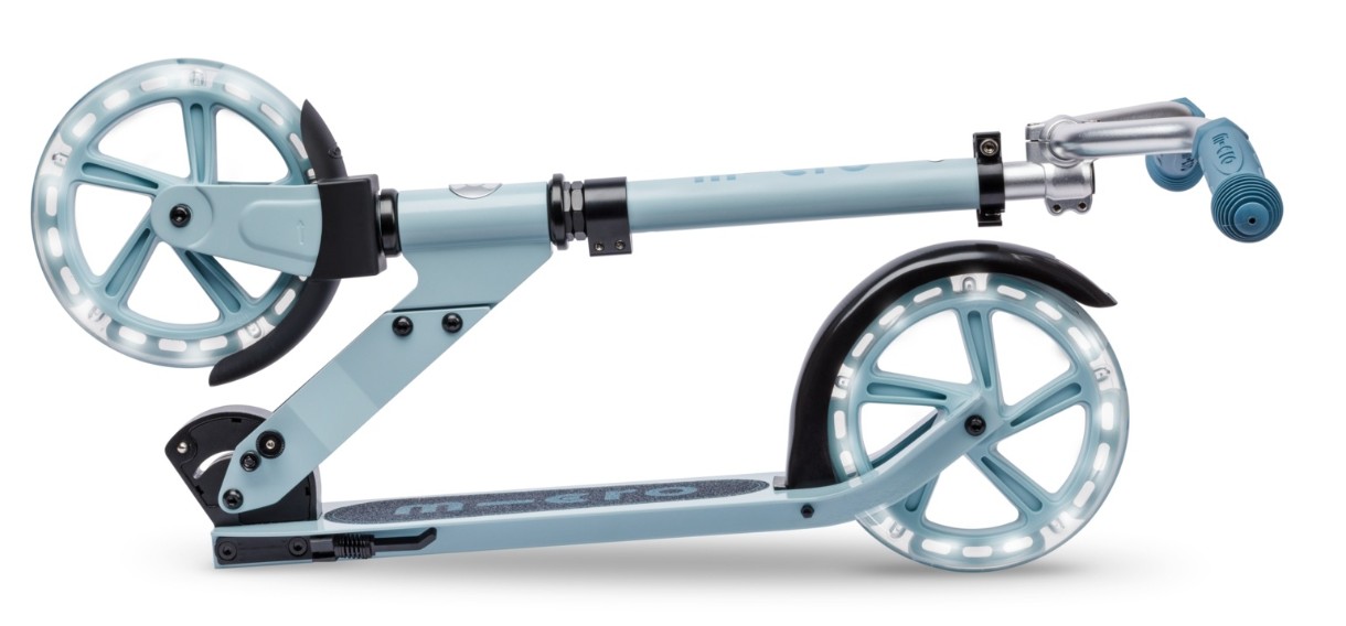 Scuter cu două roți Micro Cruiser LED 200 din Elveția, acum cu roți luminoase! - Această trotinetă este potrivită pentru plimbări confortabile și plimbări în oraș. Este proiectată pentru vârste cuprinse între 5 și 10 ani și suportă o greutate de până la 100 kg. Designul ergonomic este optimizat pentru plimbări confortabile și lungi. Greutate 4,5 kg. Trotineta pliabilă este ușor de transportat și depozitat. Micro Cruiser are o platformă largă discretă cu un suport pentru picioare, roți mari de 200 mm, cu rulmenți clasa AVES 9, care vă permit să accelerați cu un efort minim. Ghidonul lat în formă de V oferă un control perfect al scuterului, o direcție sigură și un echilibru suplimentar.