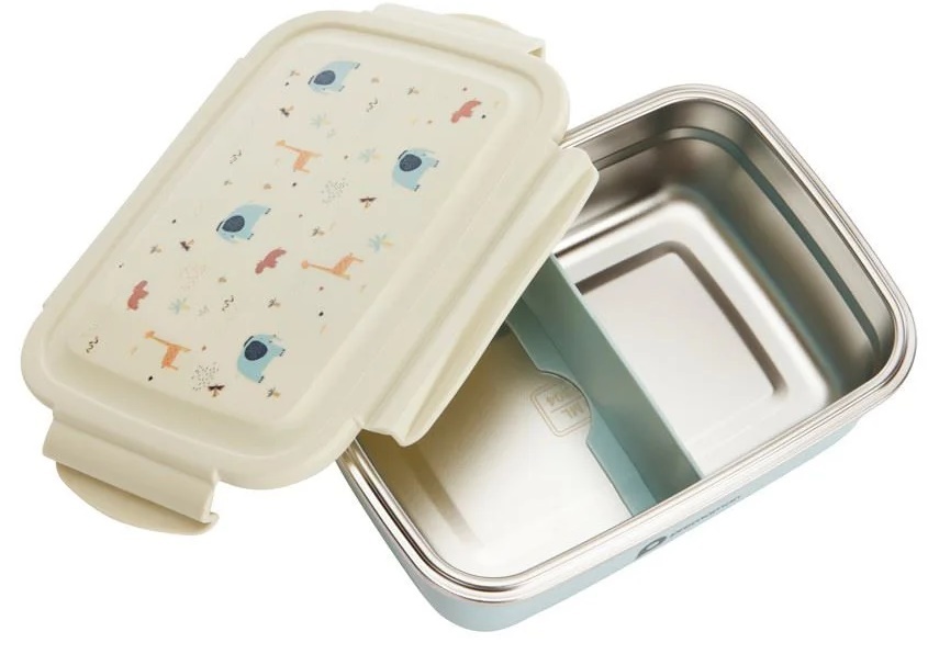 Însoțește-ți copilul în fiecare aventură cu acest lunch box Prémaman decorat cu un motiv savană! Robust și ușor de utilizat, lunch-boxul combină rezistența oțelului inoxidabil cu practicitatea unui capac cu clips și etanșare perfectă datorită garniturii din silicon.