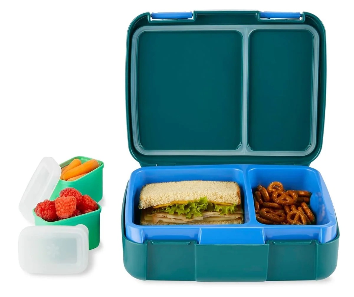 Acest Lunchbox Bento Skip Hop Spark este soluția perfectă pentru porții ideale pentru copii! Cu un design durabil și super drăguț, acest lunchbox cu secțiuni separate și recipiente cu capace este perfect chiar și pentru cei mai pretențioși. Sistemul de închidere securizat previne murdăria, iar încuietorile prietenoase cu copiii sunt ușor de deschis și închis de mânuțele mici. Mai mult, este compatibil cu mașina de spălat vase, așa că curățarea devine o joacă de copii!