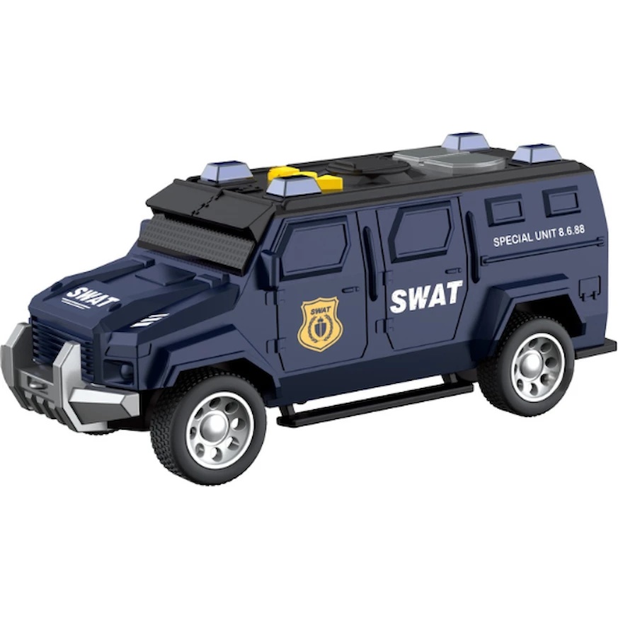 Vehiculul este echipat cu mecanism inerțial, efecte luminoase și sonore realiste, oferind o experiență de joacă captivantă.