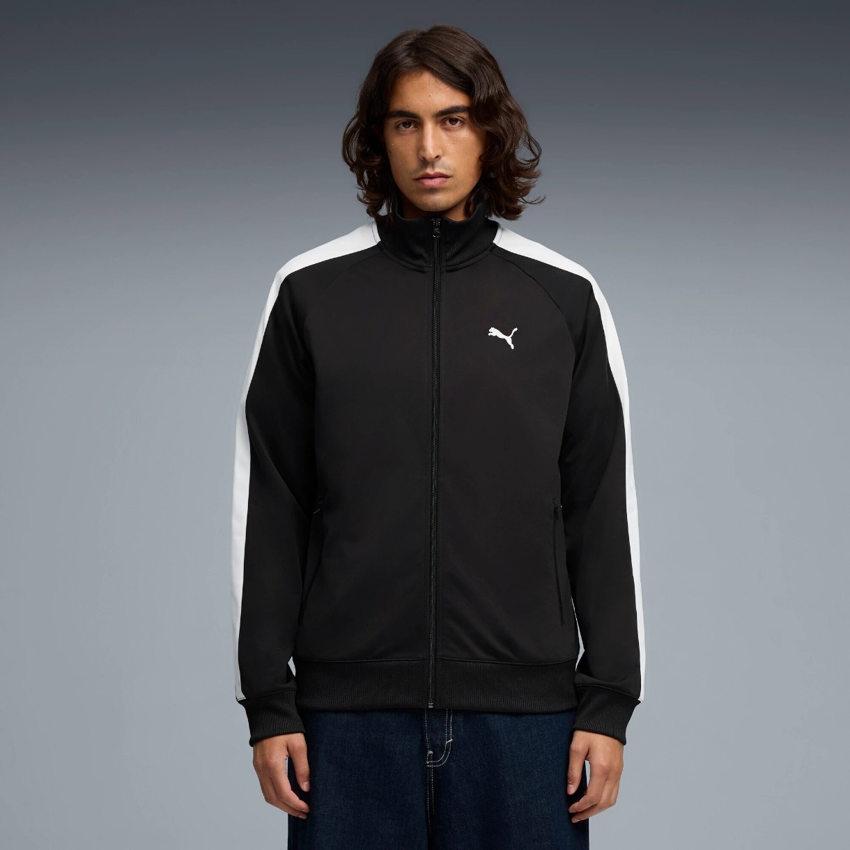Dungile T7 contrastante pe mâneci și umeri subliniază moștenirea sportivă a liniei, iar logo-ul PUMA Cat brodat pe piept completează imaginea de marcă. Modelul este confecționat din poliester reciclat.