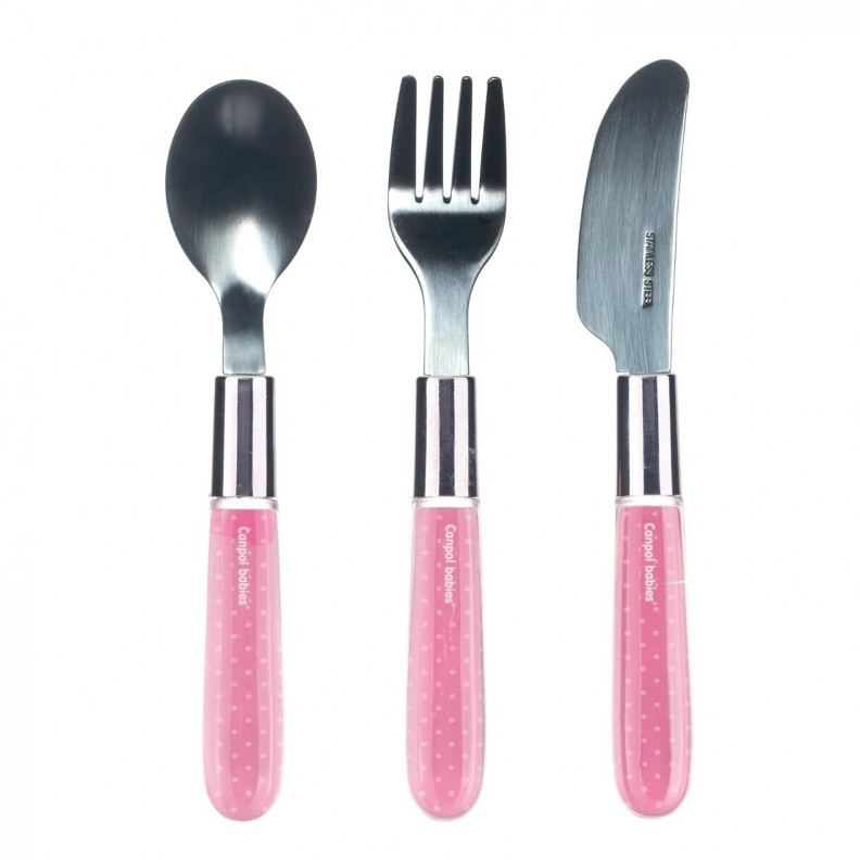 Ustensilele de metal din oțel inoxidabil de înaltă calitate. Dimensiunea este perfectă pentru mâna mică a copilului. Ideal pentru a învăța să mănânce singur. Recomandat pentru copii cu vârsta de peste 18 luni.
