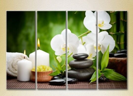 Pictură Rainbow Polyptych White orchids and bamboo (2932266)