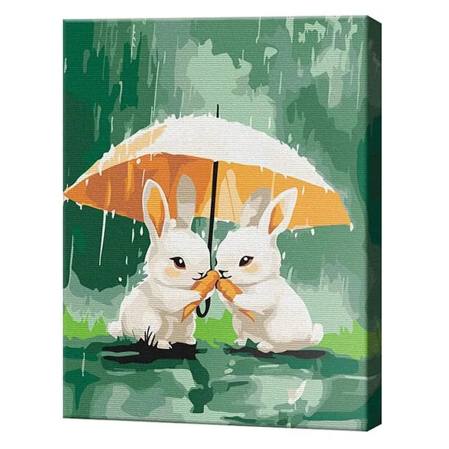 Tablou pe numere Art Gallery Econom Doi iepurași sub umbrelă 30x40cm (KBS0194)