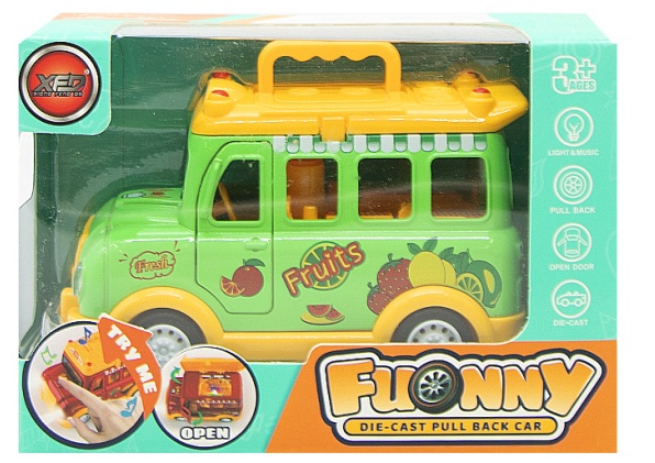 Mașina metalică „Pisica fructelor” este o jucărie luminoasă și amuzantă, o mașină din metal decorată cu imagini drăguțe și colorate de fructe și pisicuțe. Are efecte luminoase și sonore interesante, care fac jucăria și mai atractivă pentru copii.