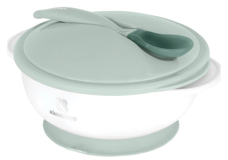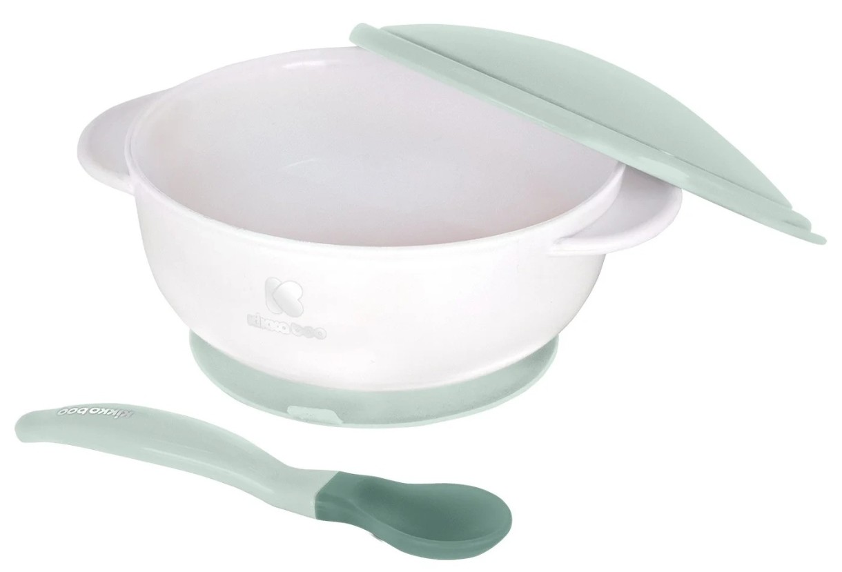 Bol cu ventuză și lingură cu senzor de temperatură Kikka Boo Mint (31302040077)