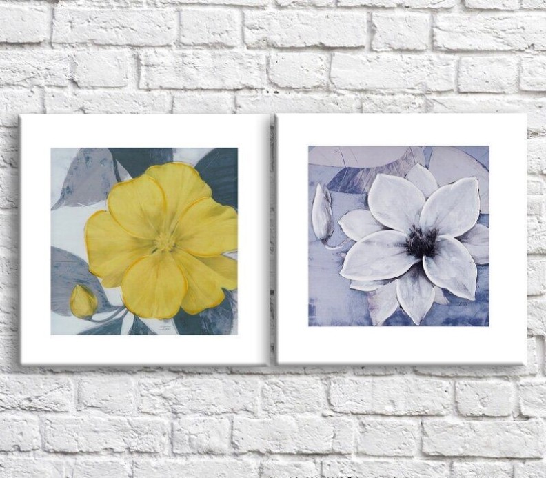 Pictură ArtPoster White water lily and Yellow flower on a background of leaves, diptych (3467647)
