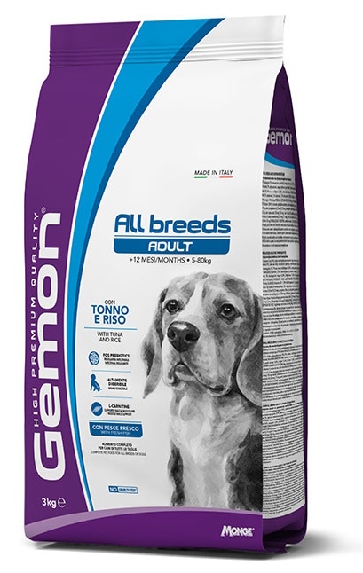 Hrană uscată pentru câini Monge Superpremium Gemon All Breeds Medium Adult Tuna & Rice 3kg