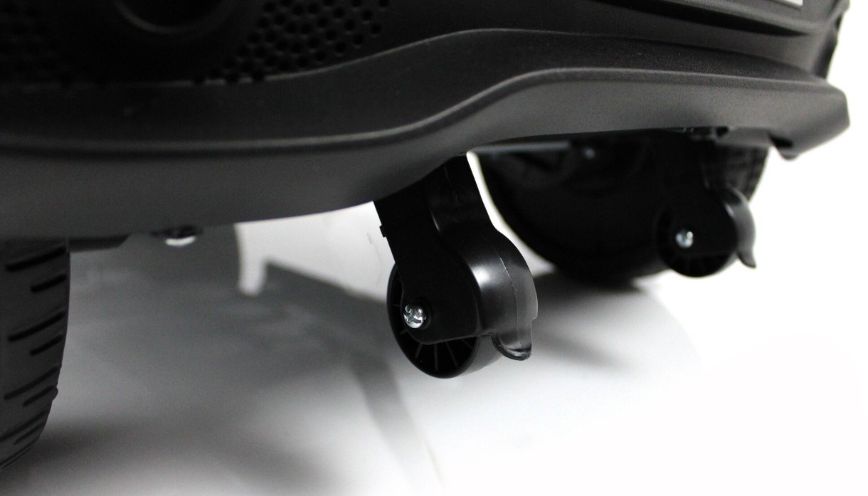Roțile din față și din spate sunt prevăzute cu un sistem de suspensie cu arc, asigurând o deplasare lină și confortabilă atât în exterior, cât și în interior.