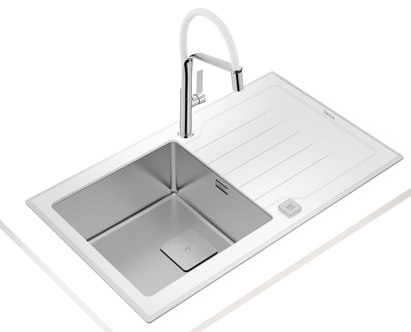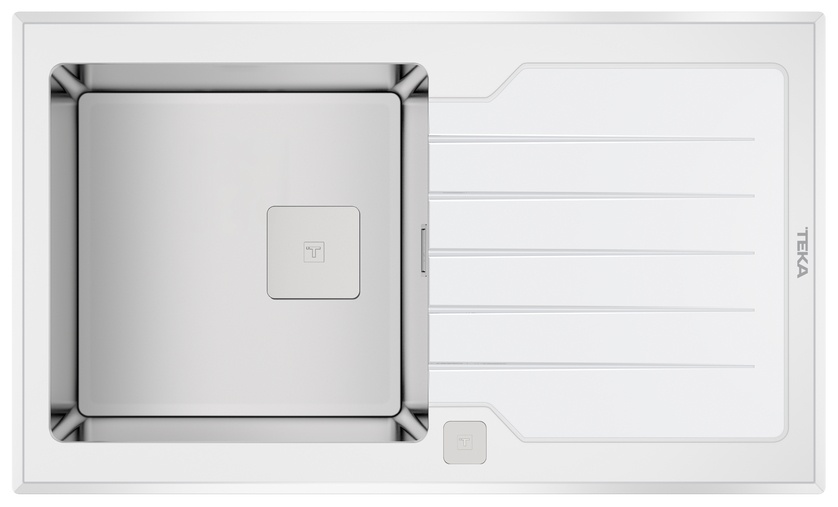 Chiuvetă de bucătărie Teka Diamond RS15 1B 1D 86 White Inox + Glass White