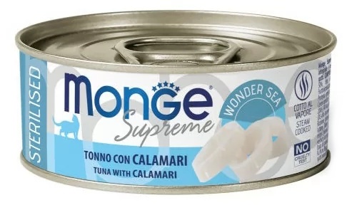 Hrană umedă pentru pisici Monge Supreme Sterilised Tuna/Calamari 80g
