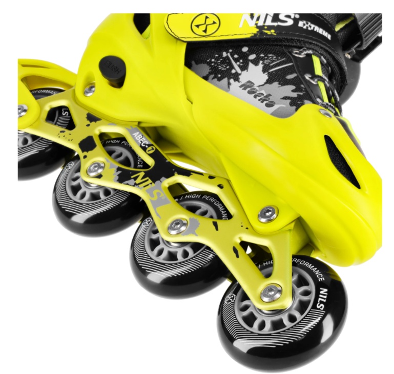 Rolele Nils Extreme, s. 35-38 Yellow (NA18137A) sunt un model stilat și confortabil pentru plimbări active. Mărimea reglabilă 35‑38 permite utilizarea lor pe mai multe sezoane, iar construcția solidă oferă confort și siguranță. Sunt echipate cu un sistem de frânare fiabil și roți stabile cu rulmenți de calitate pentru o alunecare lină. Curelele ergonomice și sistemul de prindere asigură o fixare bună a piciorului. Aceste role sunt potrivite atât pentru începători, cât și pentru pasionații de nivel mediu sau avansat.