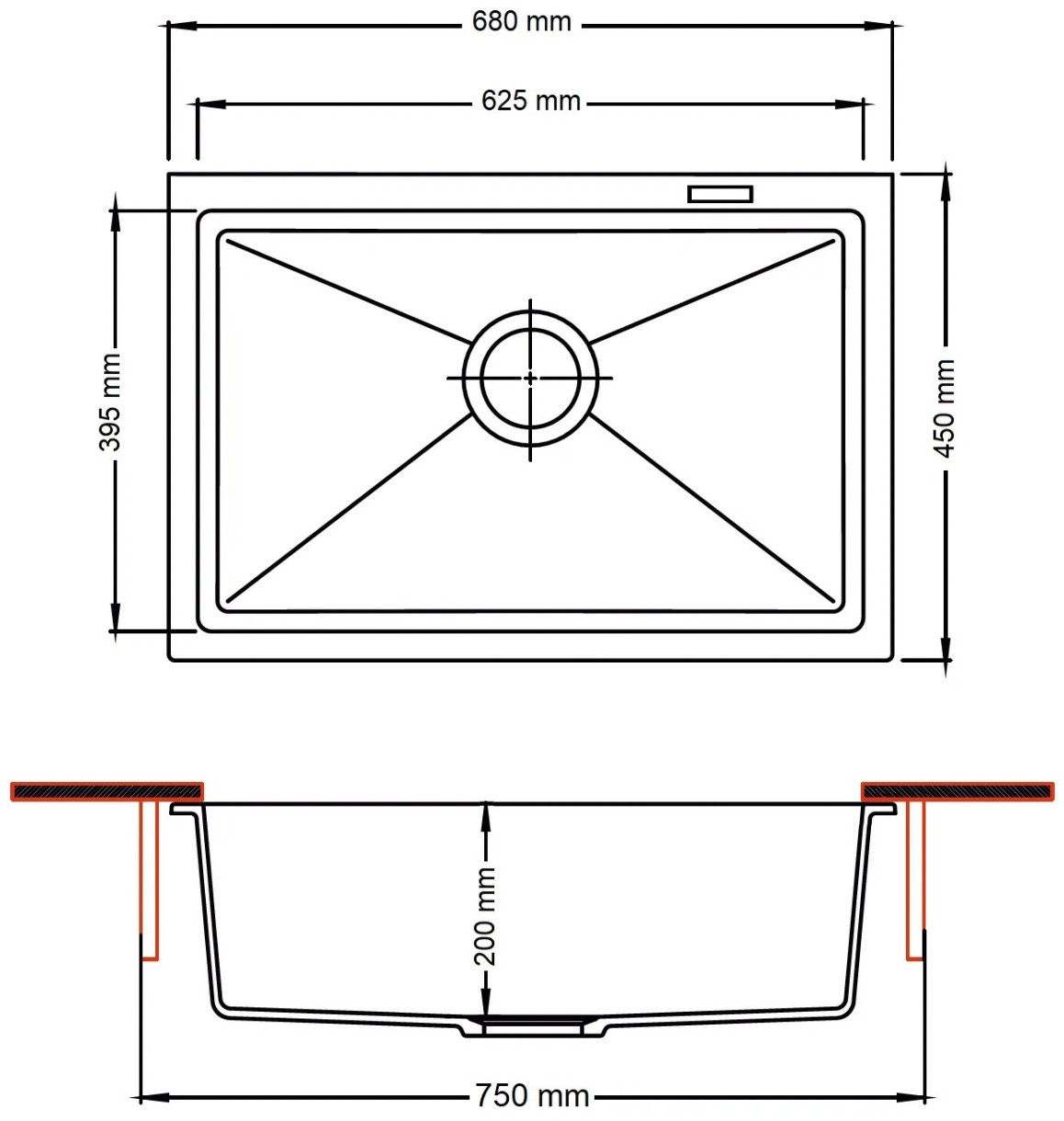 Chiuvetă de bucătărie Fabiano Navio 68x45 Anthracite