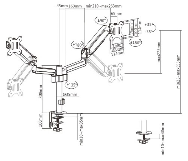 Standard VESA75x75, 100x100 mm