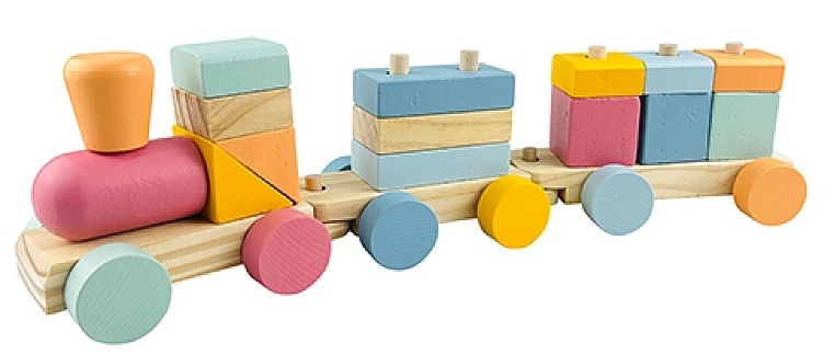 Trenulețul este format din elemente din lemn atent șlefuite și cuburi colorate, care pot fi montate și rearanjate după preferințe. Copiii pot învăța forme, culori și combinații într-un mod distractiv, în timp ce se joacă.