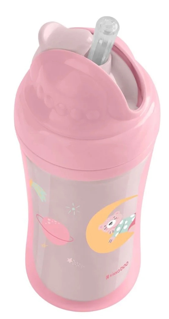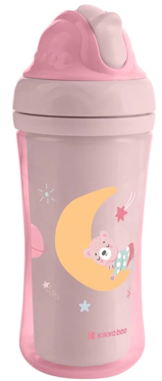 Cana cu pai Kikka Boo Dino Moony Me Pink 220ml (3800171212540)