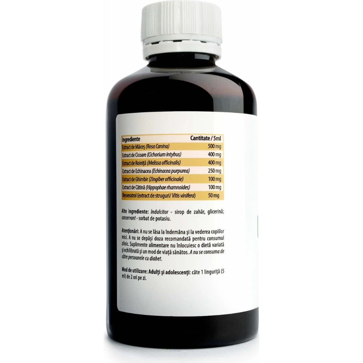 Siropul Imuno Resveratrol este un supliment natural care combină ingrediente esențiale pentru sănătatea sistemului cardiovascular și pentru protecția creierului. Datorită unui amestec puternic de extracte naturale din Măceș, Cicoare, Roiniță, Echinacea, Ghimbir, Cătină și Resveratrol, acest sirop oferă o protecție deosebită pentru inimă și creier.