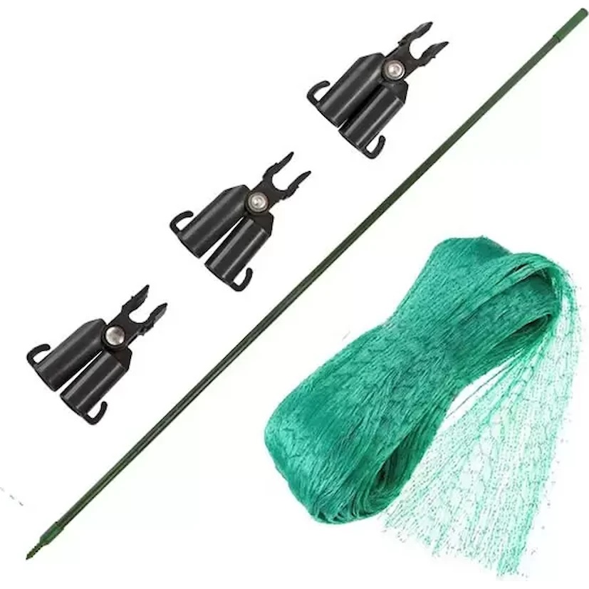 Setul include suporturi cu lungimea de 900 mm și diametrul de 11 mm, fabricate din material rezistent la condițiile atmosferice, și o plasă de dimensiunea 4x5 metri. Acest set este ideal pentru organizarea grădinăritului vertical, susținerea plantelor și crearea de bariere de protecție în grădină. Suporturile pot fi utilizate pentru susținerea plantelor cățărătoare, a arborilor tineri și a arbuștilor, iar plasa este folosită pentru protejarea plantelor împotriva dăunătorilor și pentru susținerea creșterii pe suprafețe verticale.