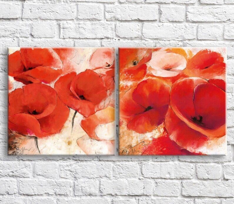 Pictură ArtPoster Pink and Red poppies in oil on White background (3467783)