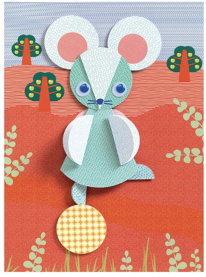 In set4 cartonașe cu imagini, 6 foi colorate decupate, 5 ochi care se învârtesc, 1 coală de autocolante față-verso, instrucțiuni cu imagine