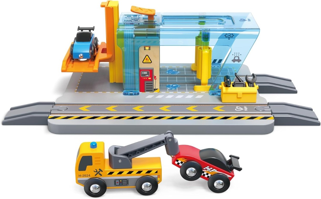 Set jucării transport Hape Repair & Wash Station (E3879)
