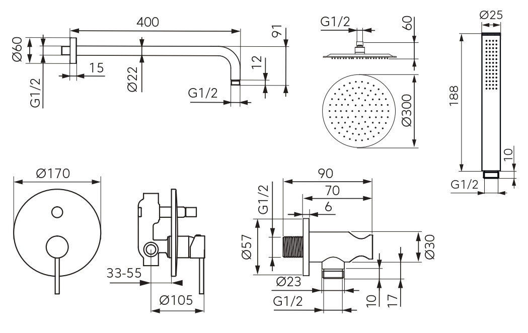 Diametru disc de dus300 mm