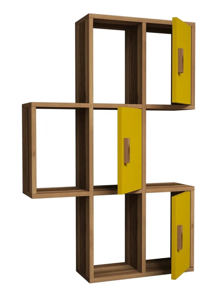 Raft de perete Trendy Flora Walnut/Yellow 112.6x75x20cm GTR005391