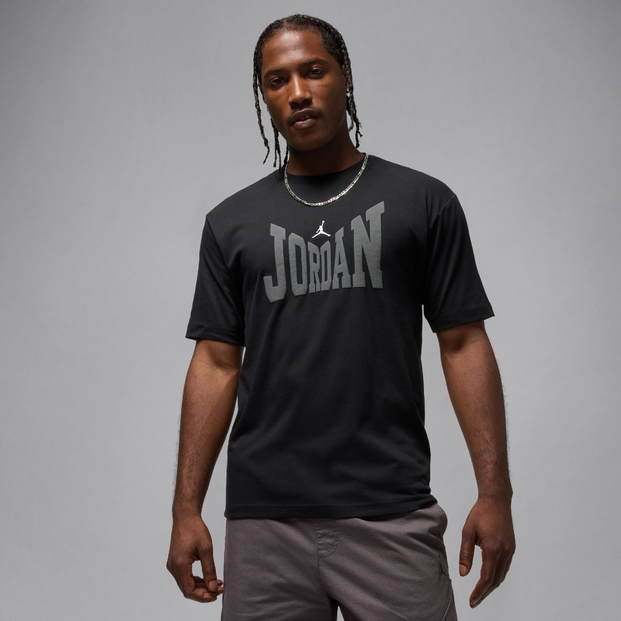 Gâtul rotund cu nervuri conturează delicat linia gâtului, adăugând rafinament ținutei, iar croiala standard creează o siluetă echilibrată, potrivită pentru orice tip de conformație. Inscripția imprimată Jordan și logo-ul brodat Jumpman pe piept subliniază stilul distinctiv și autenticitatea modelului, adăugând un accent vizual puternic și făcând tricoul imediat recognoscibil.