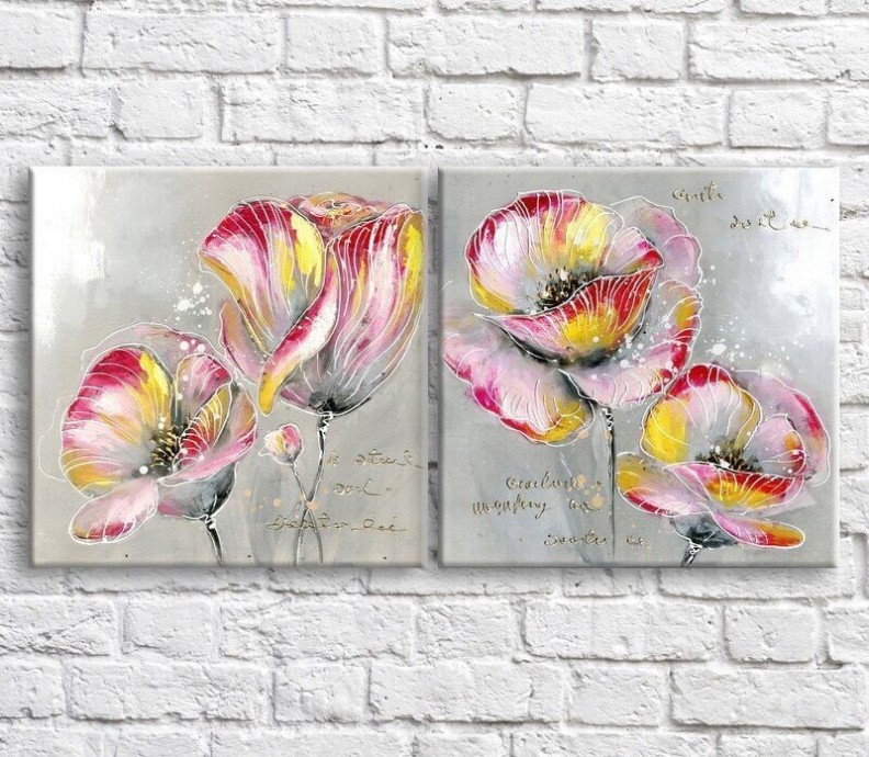 Pictură ArtPoster Multicolored poppies on a Gray background (3467772)