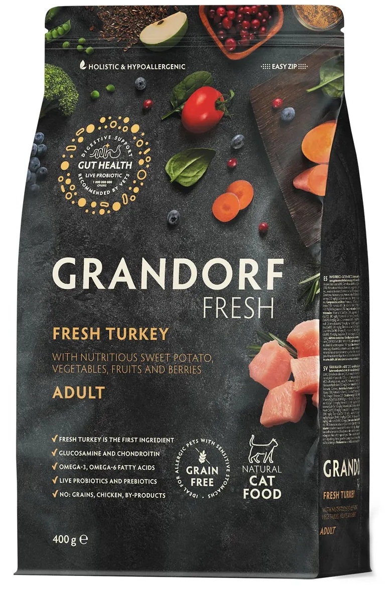 Hrană uscată pentru pisici Grandorf Fresh Adult Turkey & Sweet Potato 400g