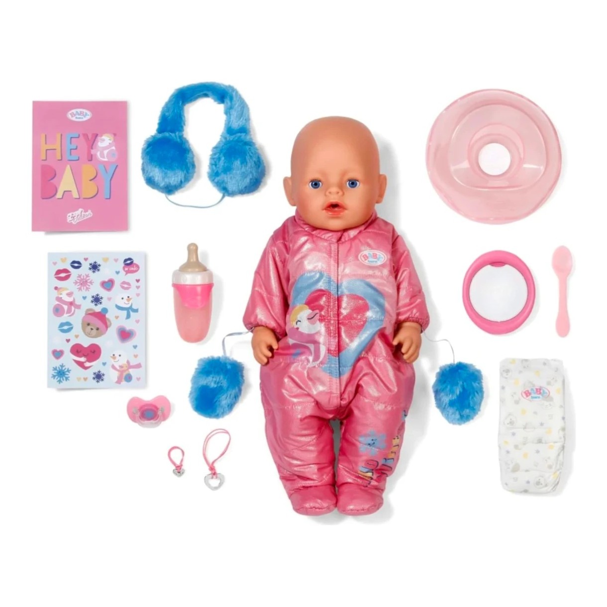 Pregătește-te pentru aventuri de iarnă cu Bebelusul Emma! Îmbrăcată într-un costum de iarnă drăguț și confortabil, cu combinezon, mănuși și căciuliță, Emma va fi mereu caldă și fericită chiar și în zilele reci. Bebelusul Baby Born oferă distracție nelimitată cu 10 funcții realiste, inclusiv băut, baie, folosirea oliței și închiderea ochilor cu suzeta. Farfurioara și olița cu tehnologii magice fac ca joaca să fie interactivă și captivantă, iar numeroasele accesorii stimulează imaginația copilului.
