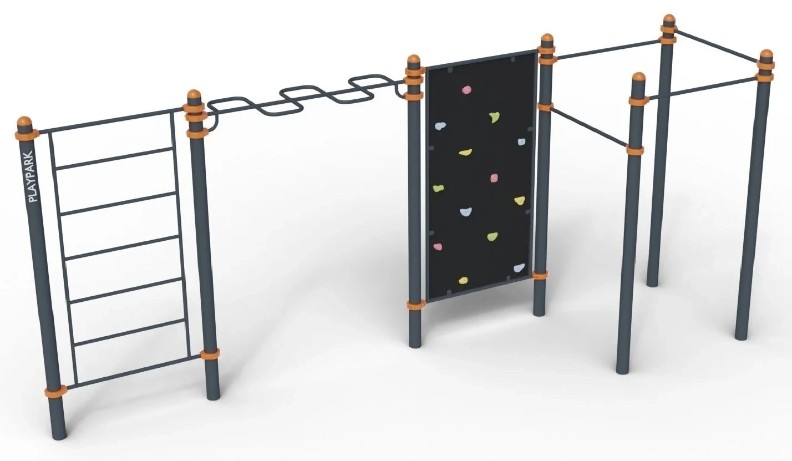 Echipamente4 bare orizontale de diferite niveluri, batoane serpentine de maimuță, scara suedeză, perete de escalada