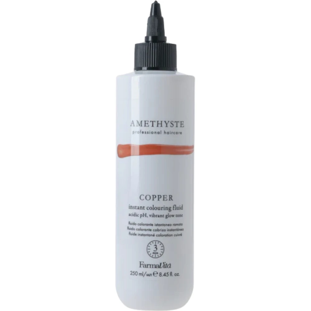 Produs de nuanțare pentru păr Farmavita Amethyste Copper Fluid 250 ml — fluid ușor pentru menținerea nuanței cupru și neutralizarea tonurilor reci nedorite.