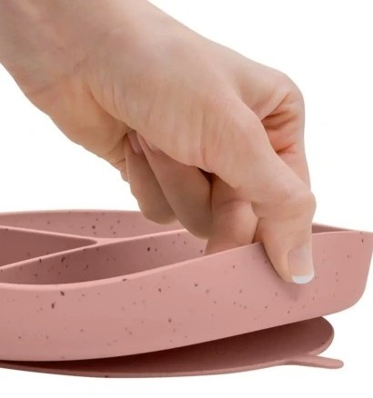 - Baza cu ventuză aderă ferm la suprafață, prevenind alunecarea sau răsturnarea farfuriei în timpul mesei.