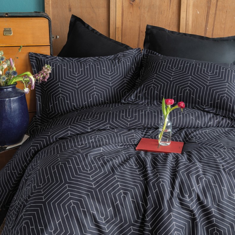 Lenjeria de pat STRADA BLACK din bumbac satinat este confecționată din țesătură (100% Bumbac) cu densitatea de 210 TC (fire pe inch pătrat), are un design modern și foarte elegant, cu desen tip rotation print imprimat pe toată suprafața, rezistent la spălări repetate. Firele de bumbac sunt de cea mai bună calitate, lungi, fine, mercerizate. Prezentarea este remarcabilă atât prin ambalaj, cât și din punct de vedere al finisajelor, fiind potrivită pentru un cadou memorabil.