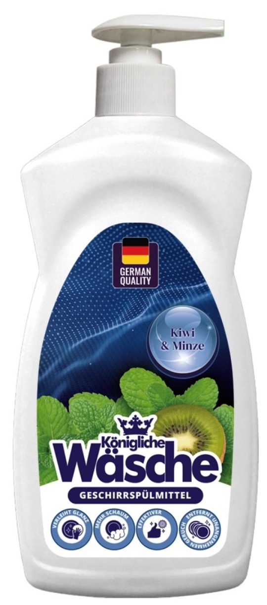 Detergentul pentru vase Königliche Wäsche este destinat spălării manuale a vaselor, tacâmurilor și altor obiecte de bucătărie. Eficiența sa remarcabilă se datorează densității excepționale și concentrației ridicate. Curăță cu ușurință murdăria, grăsimea și resturile alimentare de pe suprafețe. Spre deosebire de produsele similare de pe piață, detergentul Königliche Wäsche nu irită pielea sensibilă a mâinilor și nu provoacă reacții alergice.