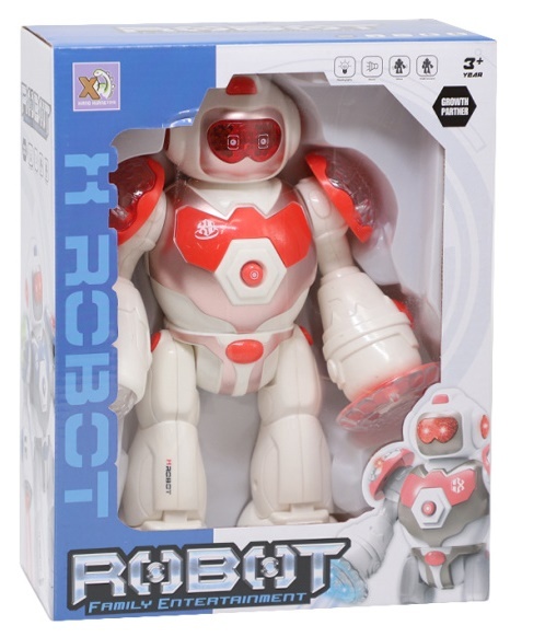 Jucăria este un robot futurist care poate merge și își poate mișca brațele.