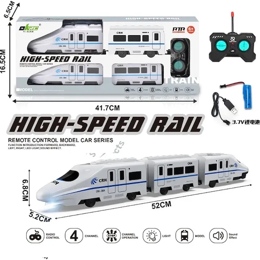 Pătrundeți în lumea aventurilor feroviare cu viteză mare cu acest tren elegant cu telecomandă! Modelul „High-Speed Rail” este realizat cu atenție la detalii și seamănă cu trenurile moderne CRH din China, fiind deosebit de atractiv pentru micii pasionați de căi ferate.