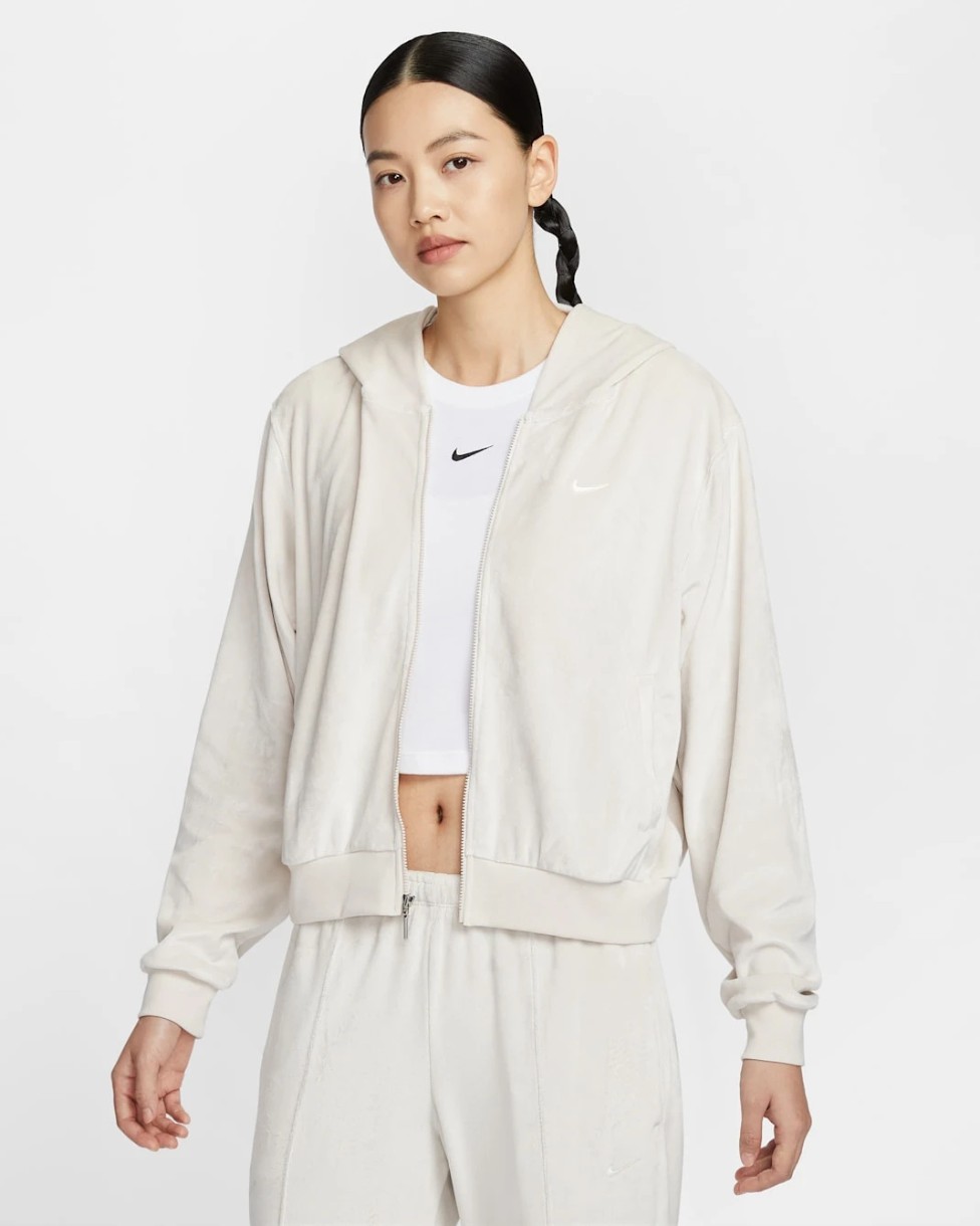 Hanorac damă Nike Sportswear Chill Knit Loose Velour Full-Zip Light Orewood Brown/Sail, s.M