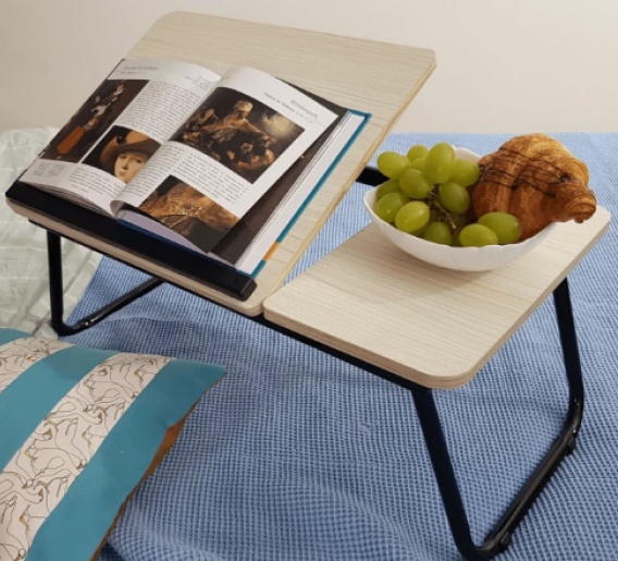 Măsuța practică, pliabilă și portabilă perfectă pentru servirea micului dejun în pat sau lucrului cu laptopul, avand partea superioară reglabilă, puteți ajusta înaltimea ei pâna la 4 unghiuri. În pozitia cea mai înaltă și de mijloc obtineti un unghi confortabil pentru laptop, carte sau ziar. Poate fi depozitată uşor, având picioare pliabile, care intră sub blat. Suportă o greutate pană la 25 kg.