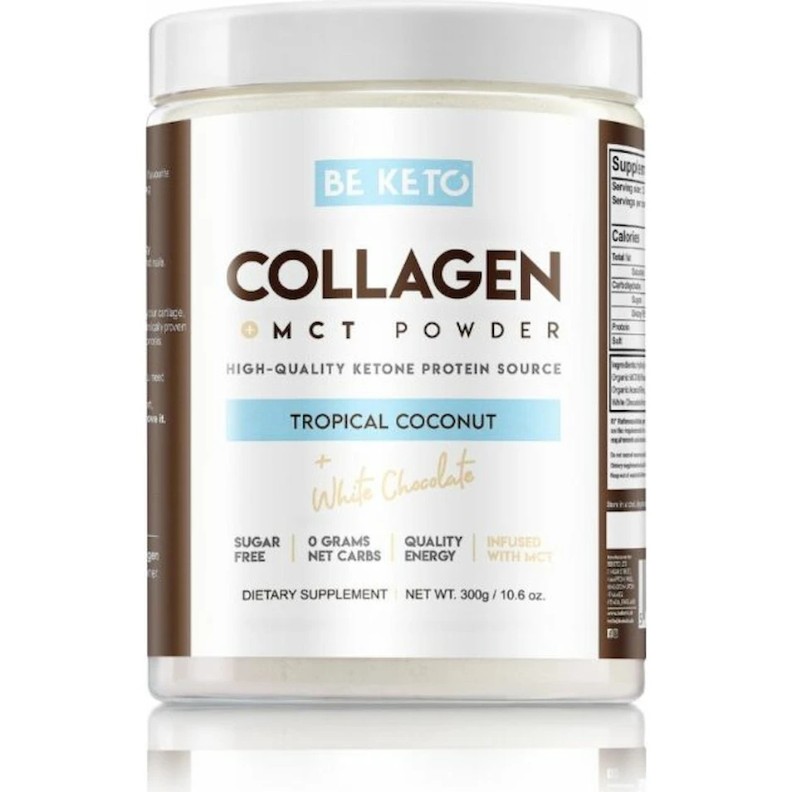 Protecție de articulație Be Keto Collagen + MCT Tropical Coconut + White Chocolate 300g