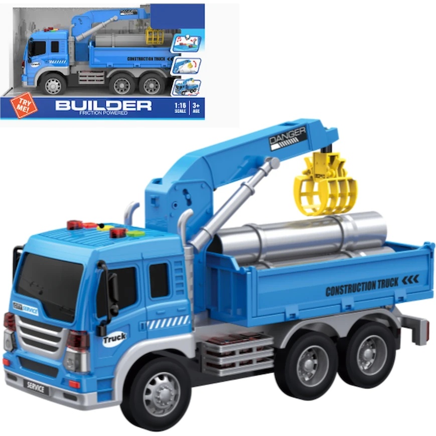 Camionul inerțial cu țeavă de apă este o jucărie captivantă și interactivă pentru copii, care oferă ore întregi de distracție. Este dotat cu efecte luminoase și sonore, făcând jocul mult mai realist. Realizat la scară 1:16, camionul include o țeavă de apă ce imită funcționarea utilajelor adevărate. Mecanismul cu inerție permite mașinii să se deplaseze ușor – este suficient să fie împinsă înainte. Această jucărie dezvoltă imaginația, coordonarea și interesul copiilor pentru tehnică.