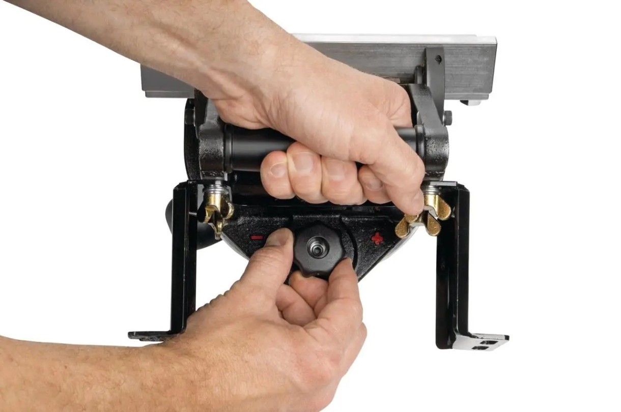 - Pentru a comuta în modul staționar, trebuie montată baza detașabilă și fixată cu șuruburi cu fluture cu prindere rapidă.