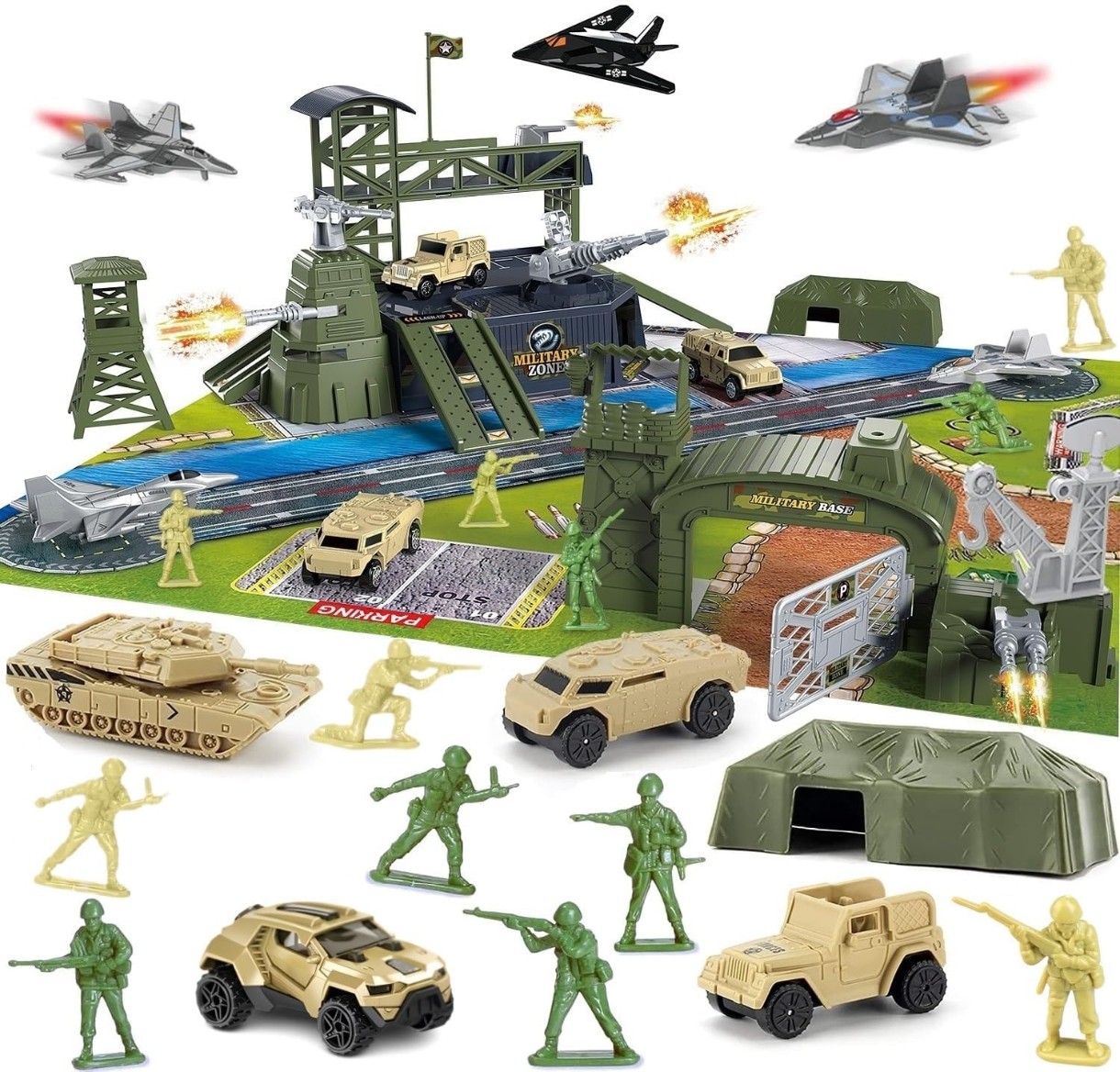 Игровой набор, состоящий из полноценной военной базы со смотровой башней, пушкой, боевыми заграждениями, складом боеприпасов, передвижным краном-платформой, военными автомобилями и базовым отрядом военной службы, станет желанным подарком для мальчика и позволит ребенку погрузиться в мир, полный захватывающих приключений и тайных операций.