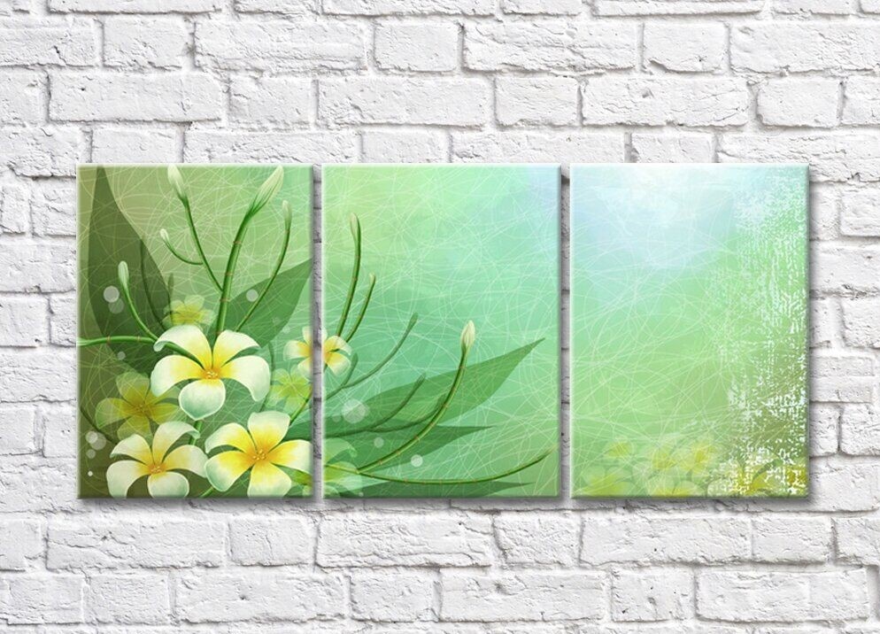 Pictură Magic Color White and yellow plumeria flowers on abstract green background (500065)