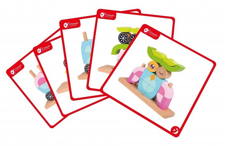 Set de cuburi din lemn "Bufnita" Classic World - format din 14 cuburi de lemn care pot fi combinate pentru a crea diverse obiecte și animale. Ajută la dezvoltarea imaginației și a abilităților intelectuale ale copilului. Jucăria este fabricată din lemn natural, pentru producerea ei se folosesc vopsele sigure.