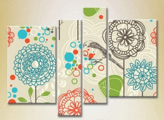 Pictură Rainbow Polyptych Sparrows on a background of flowers 03 (2230533)