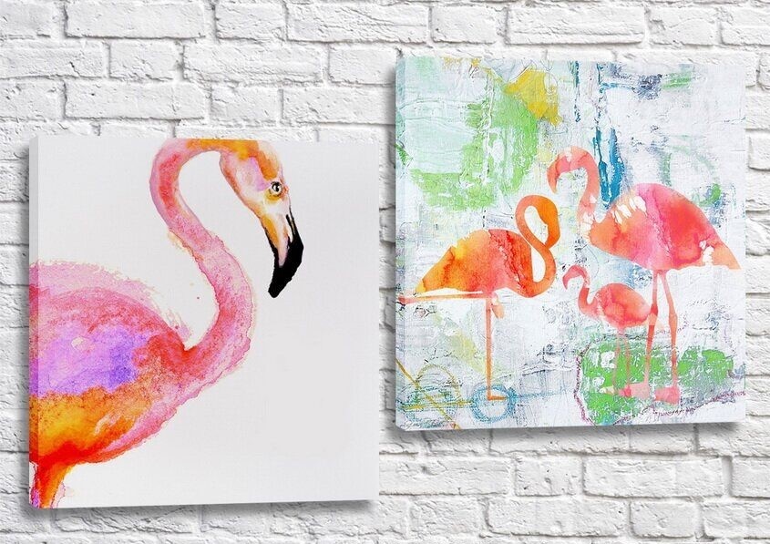 Pictură ArtPoster Painted flamingos on canvas (3451154)