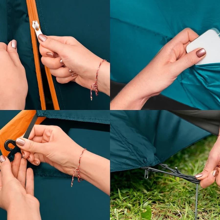 Cortul este prevăzut cu plasă anti-insecte, care protejează împotriva țânțarilor și permite în același timp circulația aerului. De asemenea, intrările cu spații suplimentare (tip mic vestibul) oferă loc pentru depozitarea echipamentului sau a încălțămintei.